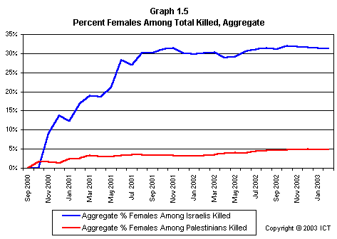 The issue of gender has not been widely discussed in relation to the al-Aqsa conflict. Investigation of the sexual composition of fatalities on both sides of the al-Aqsa conflict reveals some striking facts.